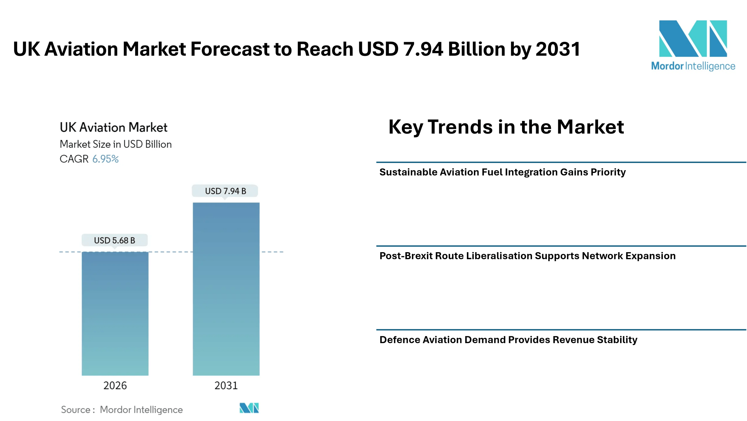 Home Press ReleasesUK Aviation Market Forecast to Reach USD 7.94 Billion by 2031, Driven by Sustainable Fuel Adoption, Defence Programs, and Passenger Recovery – Mordor Intelligence